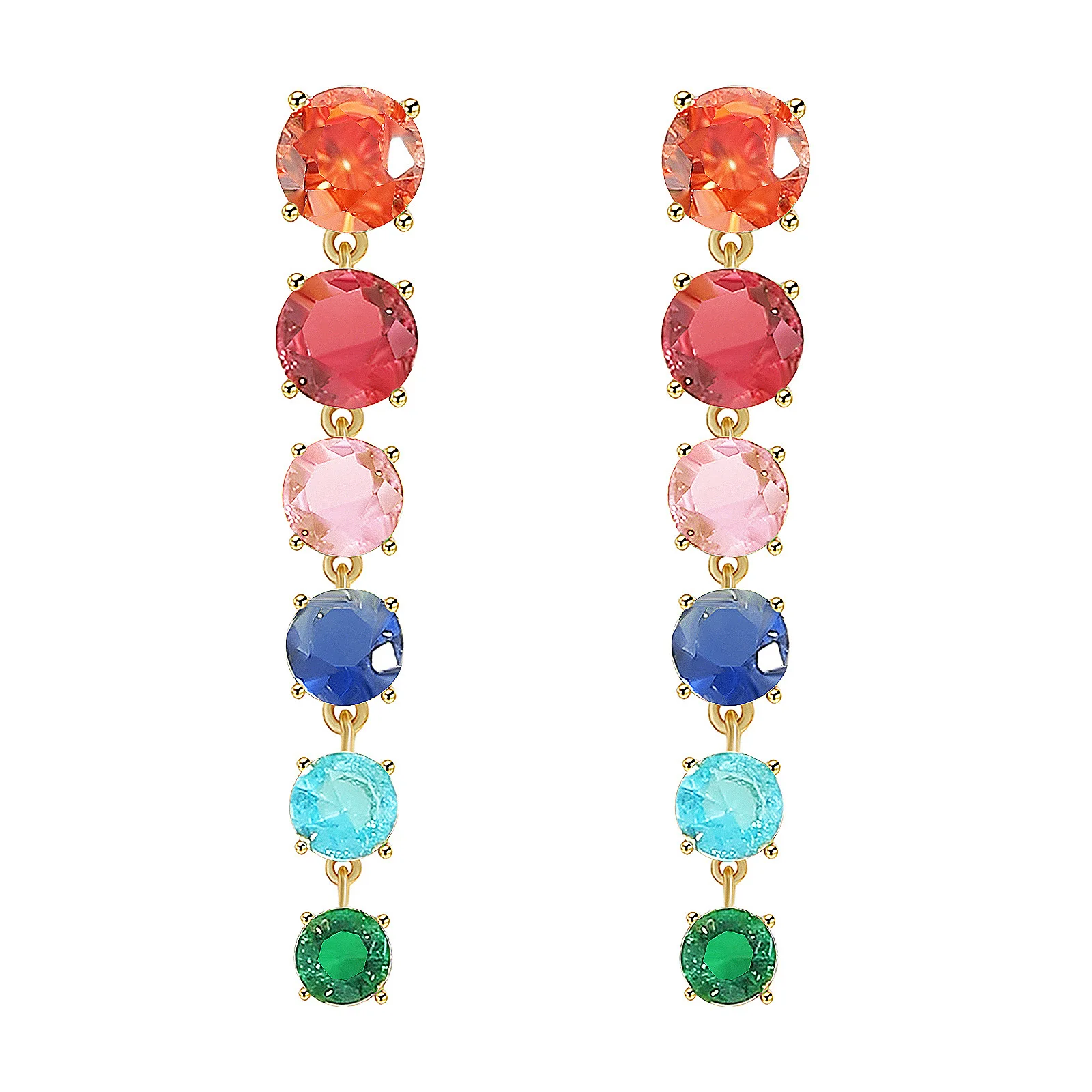 Купить Free Shipping Luxury Colorful CZ Crystal Ear Drop Tassel Long Earrings Emerald Ruby Sapphire Ear Dangle Hoops Statement Jewelry за 250рублей