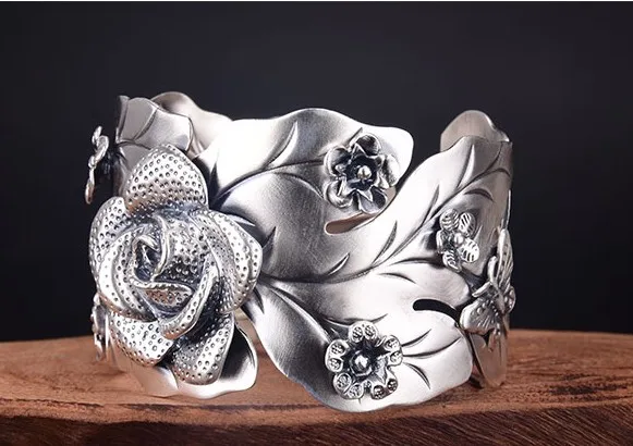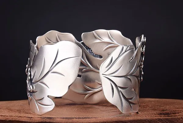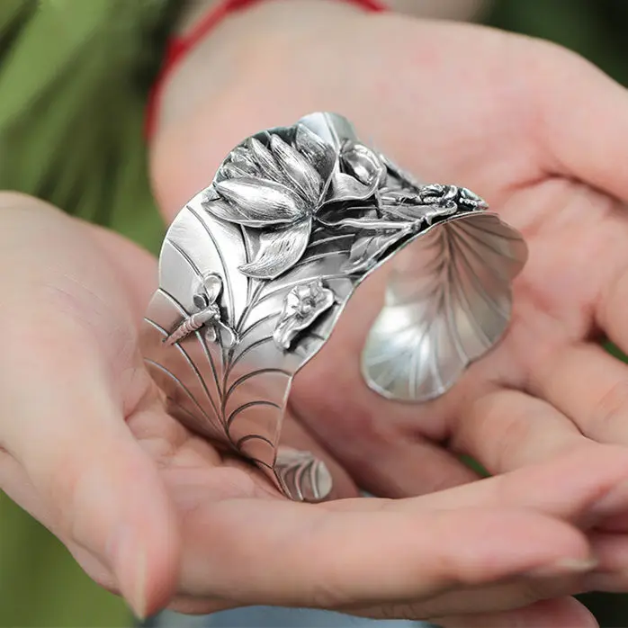 Купить Full silver s999 wide face lotus Dragonfly swimming Bracelet relief retro butterfly open wide version BRACELET NEW за 1350рублей