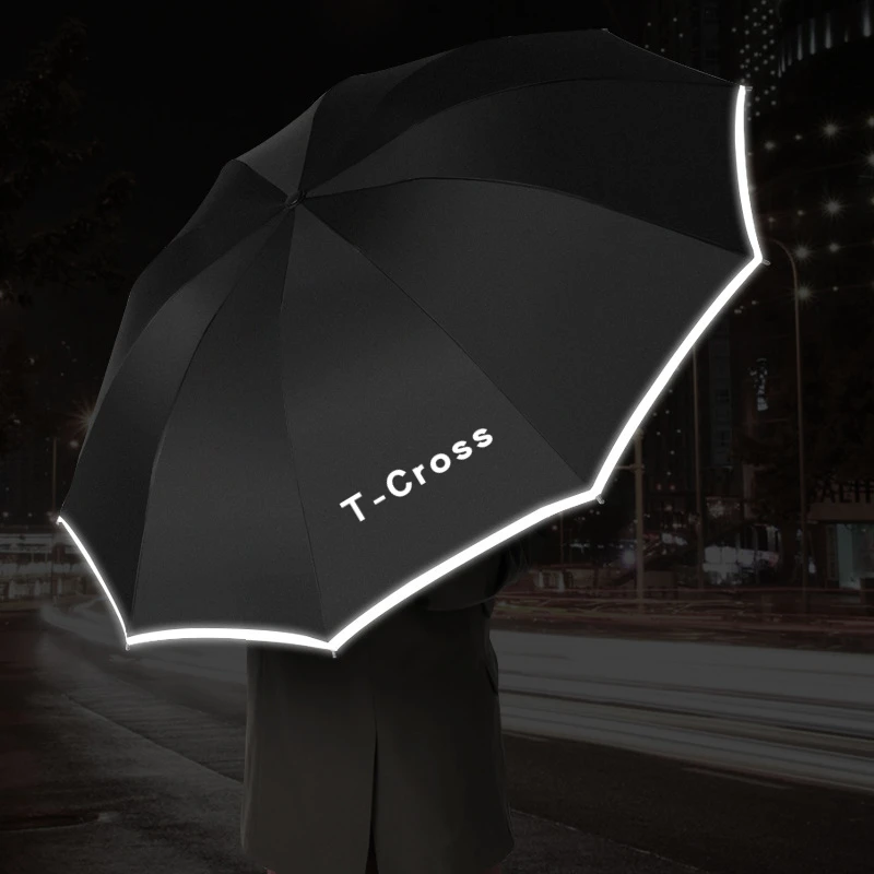 Купить Fully Automatic UV Umbrella With LED Flashlight Reflective Stripe Reverse Large Umbrellas For VW T-CROSS 2018 2019 2020 за 650рублей