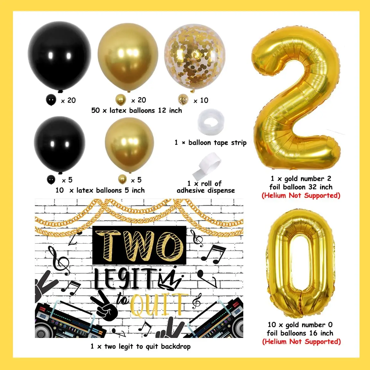 Купить Funmemoir Hip Hop 2nd Birthday Party Decoration Two Legit To Quit Backdrop Gold Balloon Garland Chain Number 2 Foil Balloons за 900рублей