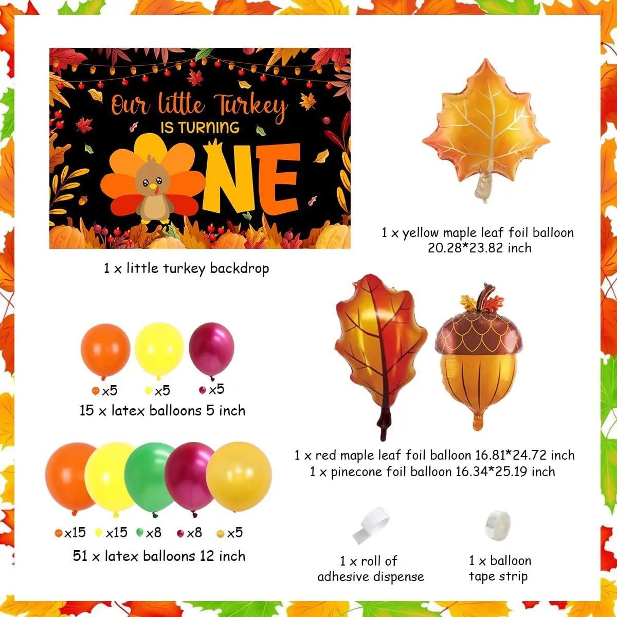 Купить Funmemoir Thanksgiving Turkey 1st Birthday Decorations Autumn Maple Leaf Balloon Garland Backdrop Kit Birthday Party Supplies за 950рублей