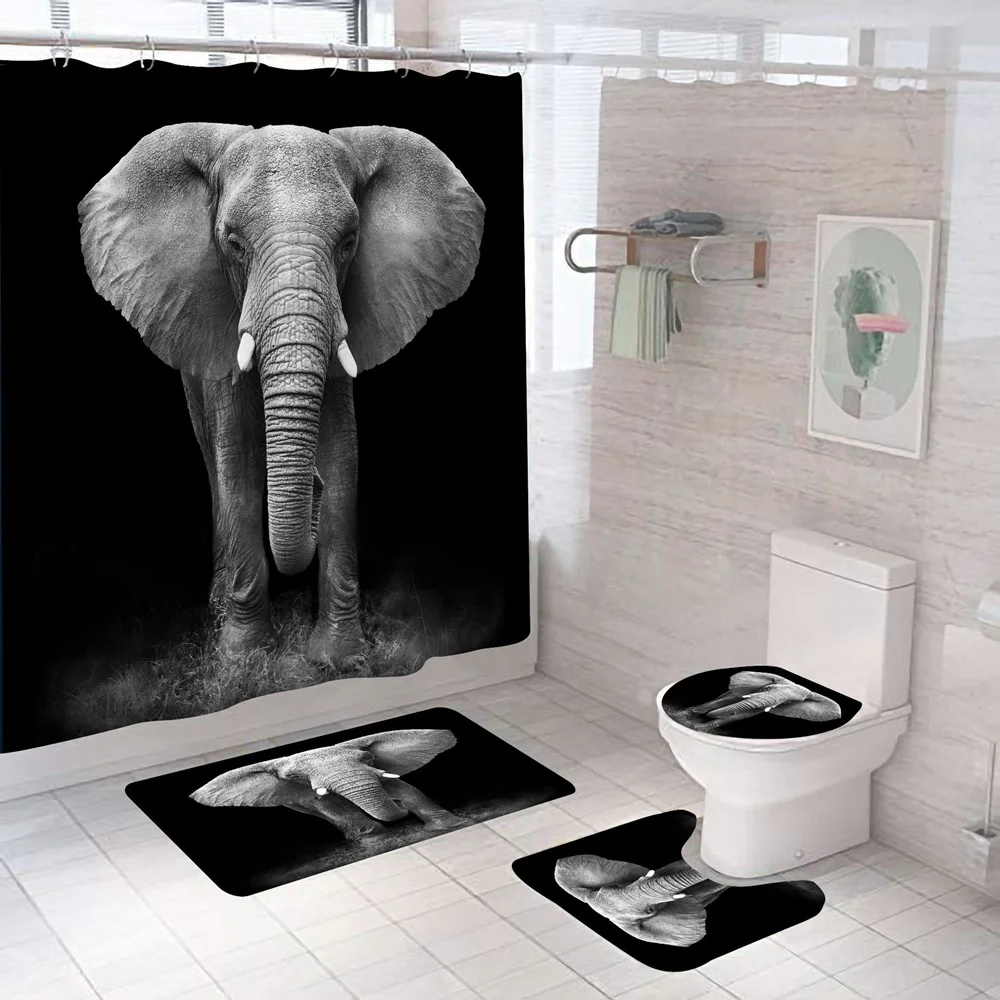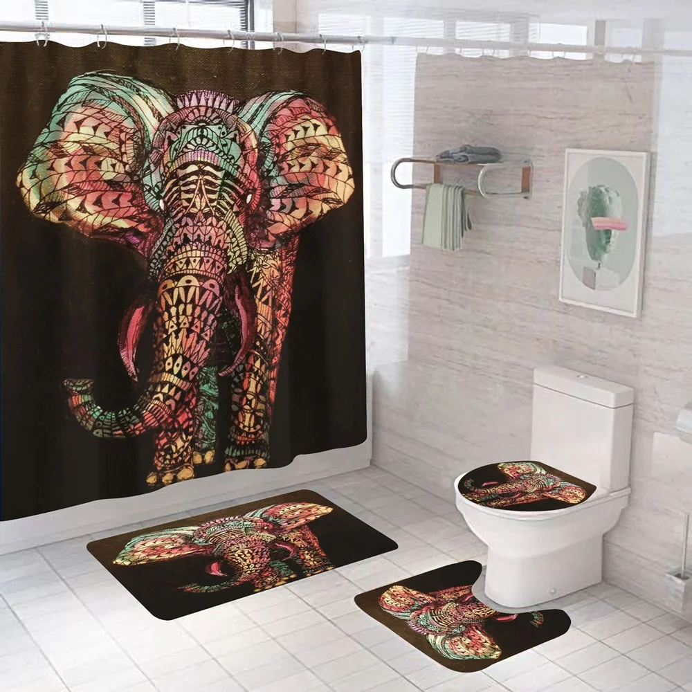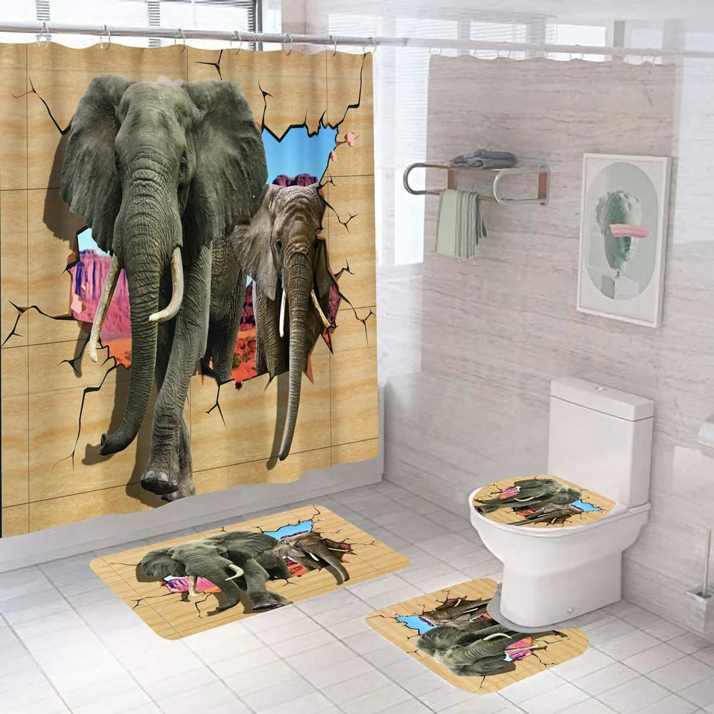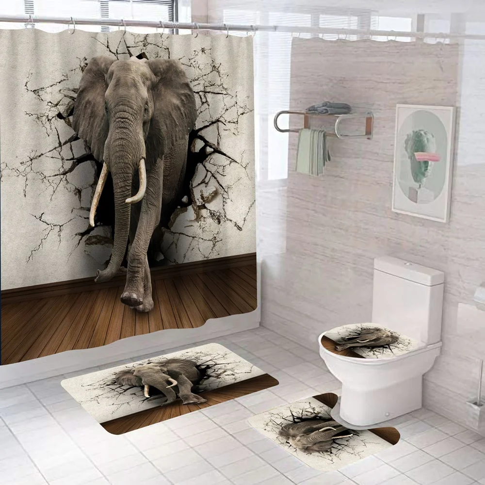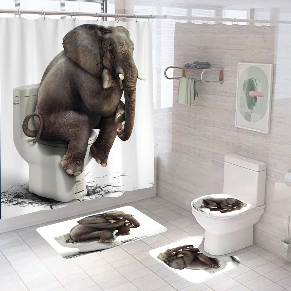 Купить Funny Blowing Bubbles Elephant Shower Curtain Set Cute Animal Bath Curtains Non-Slip Bathroom Decor Rug Mat Toilet Lid Cover New за 900рублей