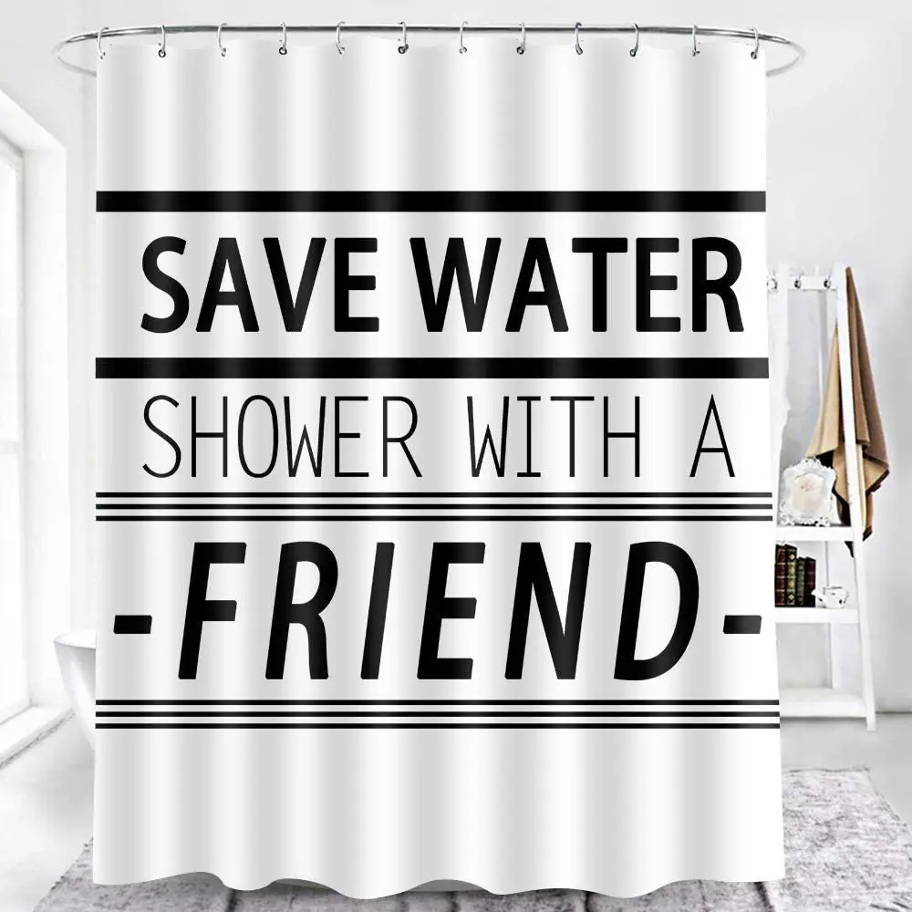 Купить Funny Quote Words Shower Curtain ,Save Water Shower with a Friend with Hooks Waterproof Fabric Shower Curtain Decor White Black за 550рублей