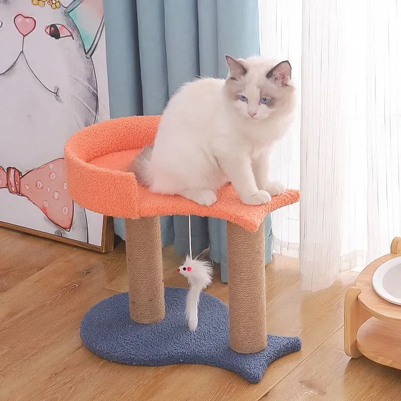 Купить Funny Scratching Post Climbing Tree Toy with Feeding Bowl Cat Condos with Sisal Poles Tower Board Cat Toys Climbing Tree за 450рублей