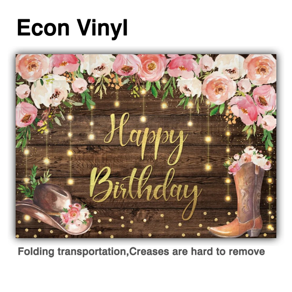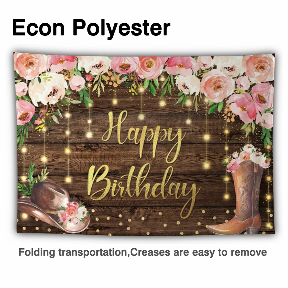 Купить Funnytree Happy Birthday Backdrop Wood Flower Golden Light Dot Cowboy Hat Boots Party Supplies Props Custom Decor Background за 550рублей