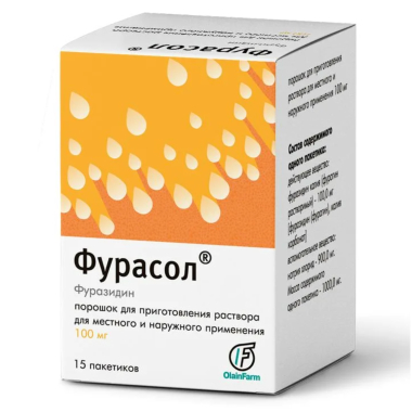 Купить Фурасол, пакетики 100 мг/1 г, 15 шт . в интернет-аптеке в Орле, низкие цены и официальная инструкция по применению, честные отзывы покупателей и фармацевтов о Фурасол, пакетики 100 мг/1 г, 15 шт . .