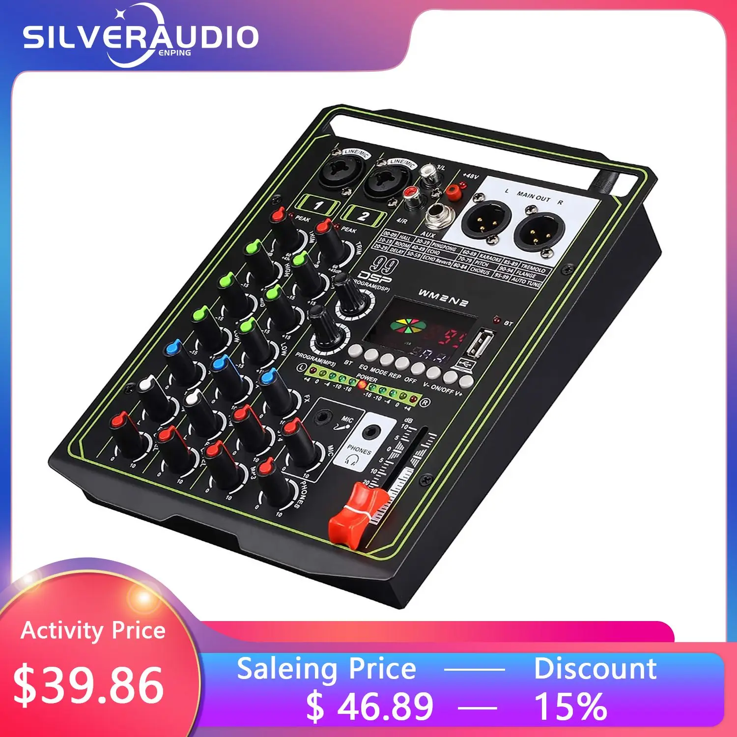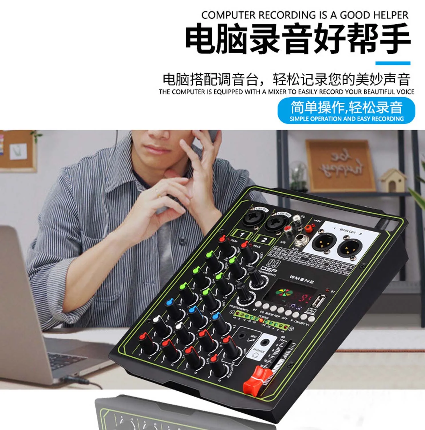 Купить GAX-MJ4 Professional 4-channel mixer, microphone, mobile phone live broadcast, computer recording, home KTV audio equipment за 2000рублей