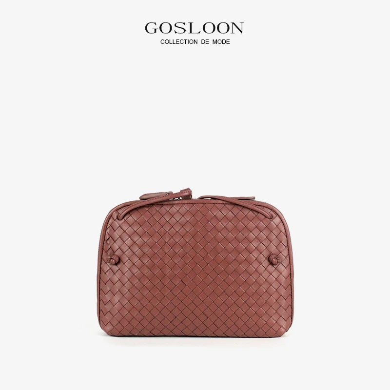 Купить GOSLOON-Woven small square bag 2022 new versatile leather shoulder bag fashion luxury brand design simple messenger bag за 4150рублей