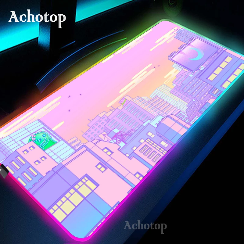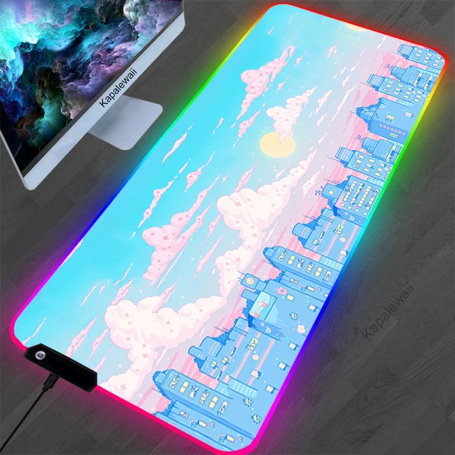 Купить Gaming Mouse Pad RGB Kawaii Moon landscape Computer Mouse Pad Large Gaming Mousepad XL Mouse Pads Pink PC Gamer 900x400 Desk Mat за 850рублей