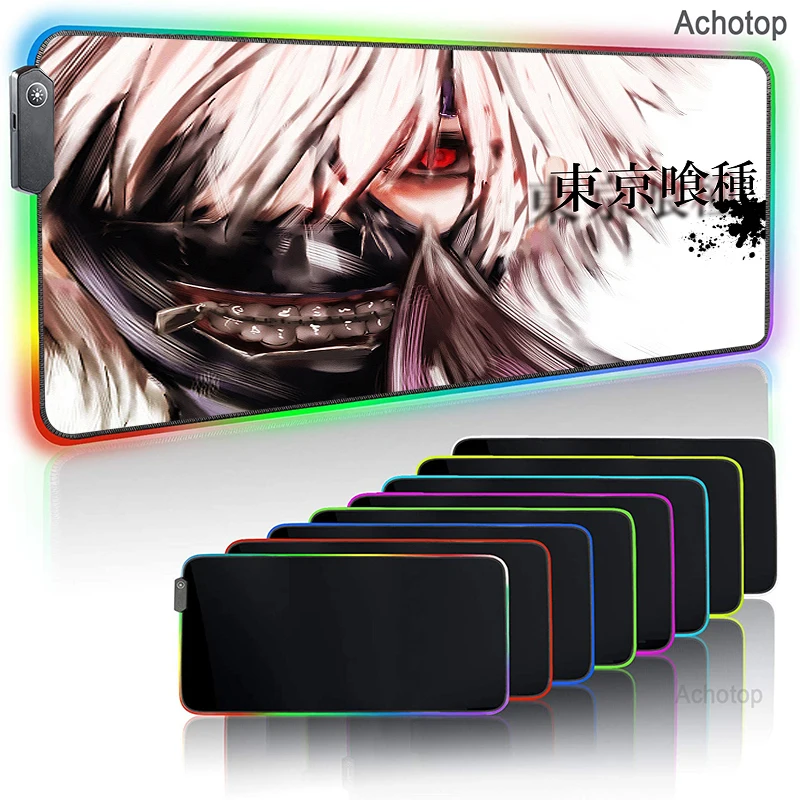 Купить Gaming Mouse Pad RGB Tokyo Ghoul Mousepad Anime Cartoon XXL Large Mouse Pad Keyboard Computer PC Gamer Desk Mat Notbook LED Pad за 1000рублей