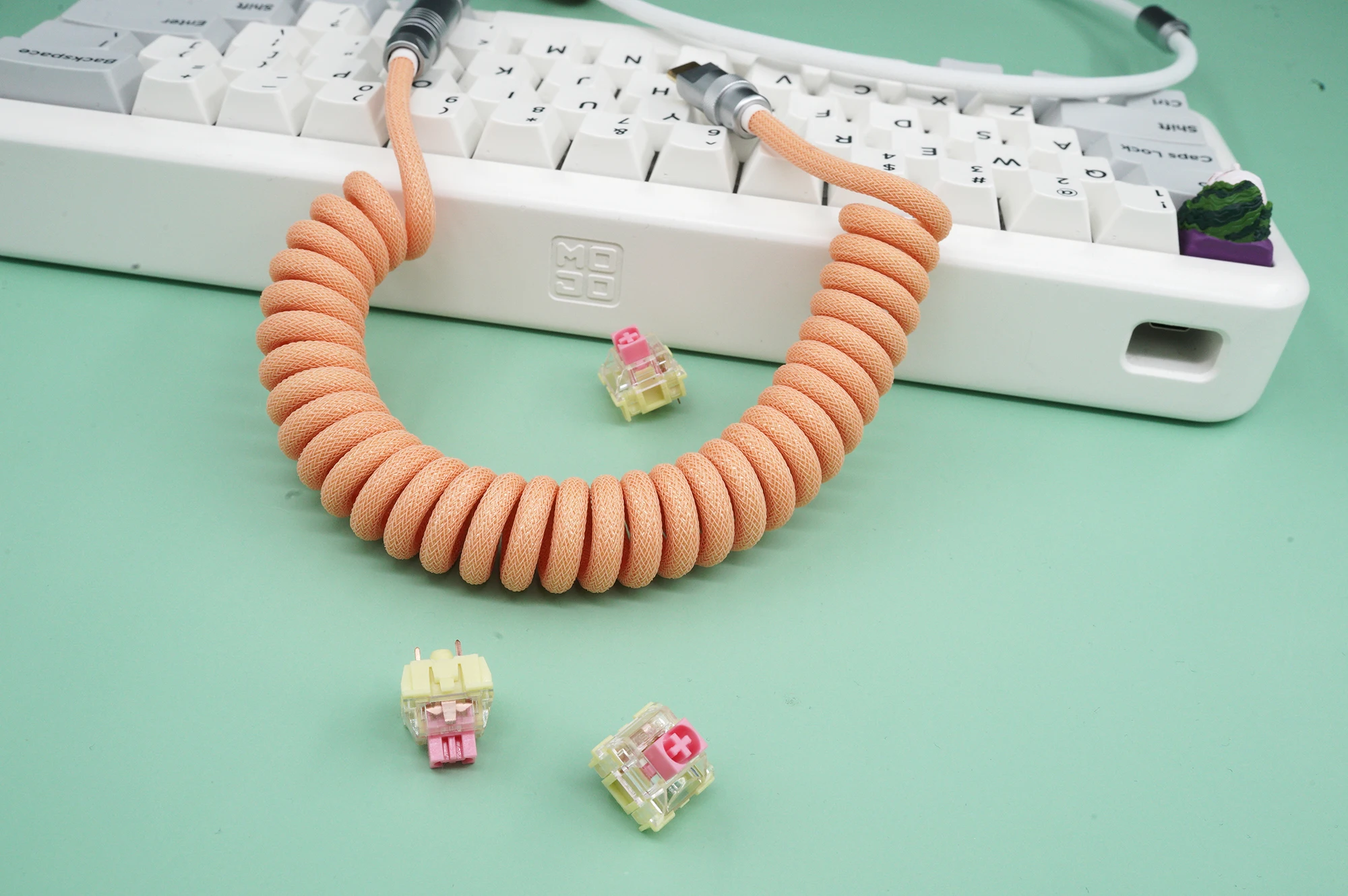 Купить GeekCable Hand-made Customized Keyboard Data Spiral Line Rear Aviation Plug Peach Color + White for Mechanical Keyboard за 2850рублей