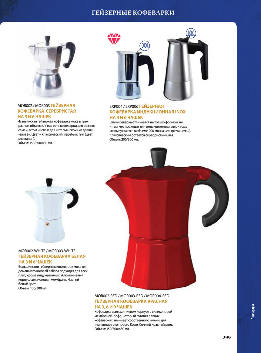Гейзерные кофеварки . Bialetti . Morosina . Zeidan . Гейзерные кофеварки 120 мл (1-3 порции) Гейзерные кофеварки 150 мл (3 порции) Гейзерные кофеварки 160 мл (2-4 порции) Гейзерные кофеварки 240 мл (3-6 порций . . .