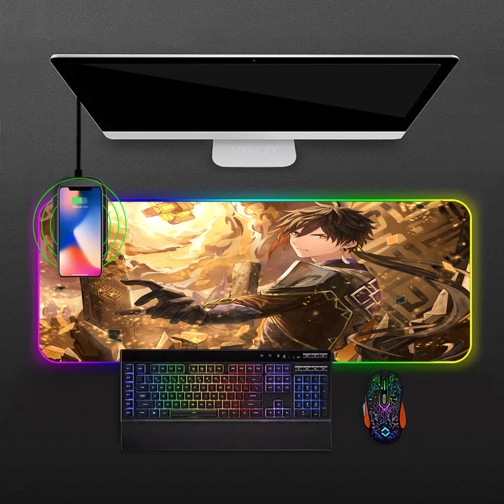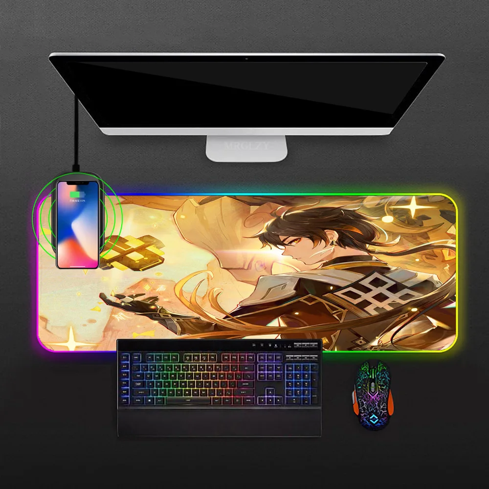 Купить Genshin Impact Gamer Accessories RGB Wireless Charging Mousepad Zhongli Mousepad Anime Carpet Pc Gamer Rug Gaming Laptop Table за 1200рублей