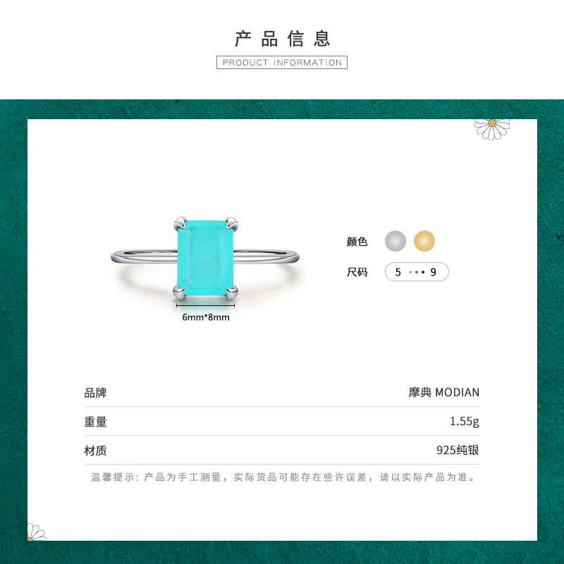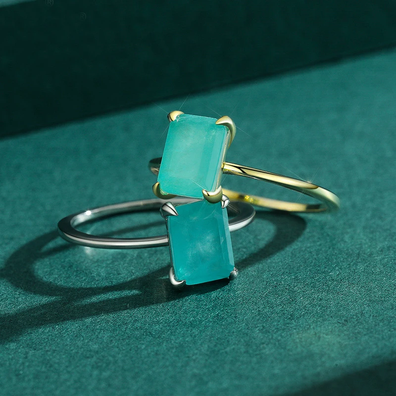 Купить Genuine 925 Sterling Silver Blue Rectangular Zircon Rings for Women Simple Geometric Thin Finger Ring Hypoallergenic Jewelry за 600рублей