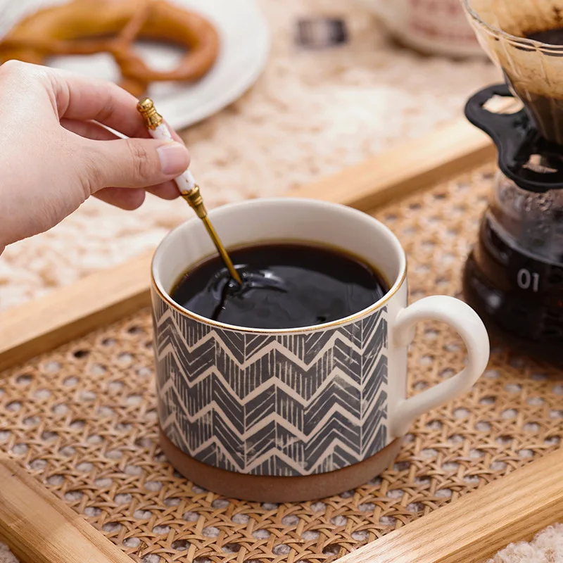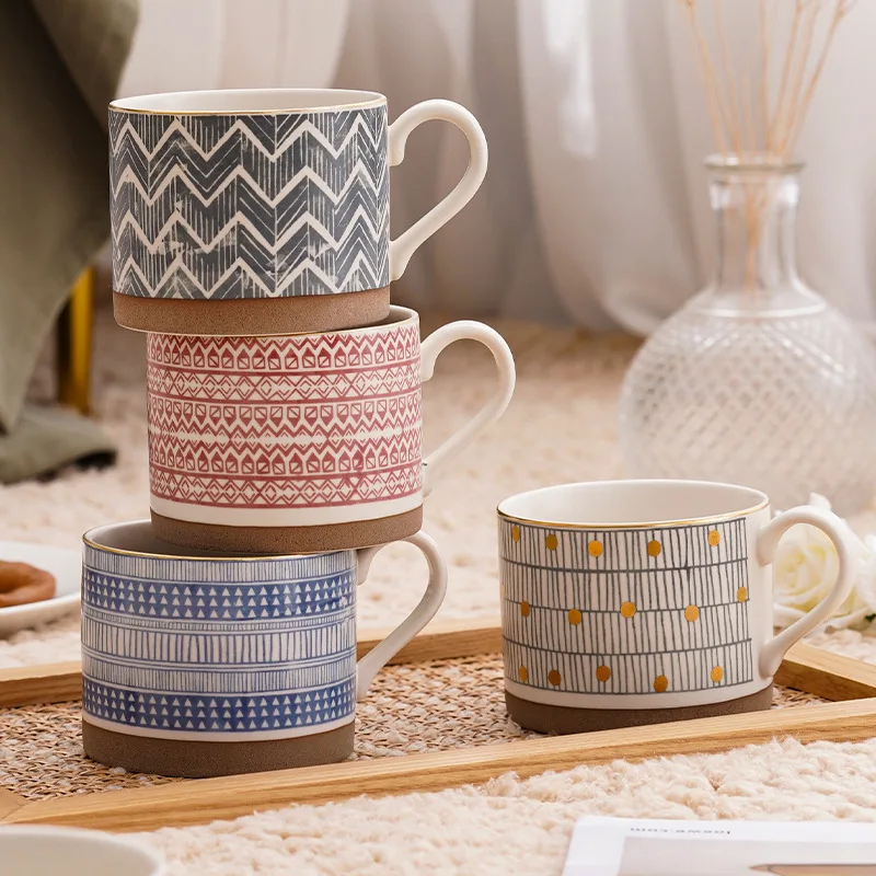 Купить Geometric Pattern Mug Rough Pottery Phnom Penh Ceramic Water Cup Light Luxury Large Capacity Coffee Cup Kitchen Drinkware 450ml за 1150рублей