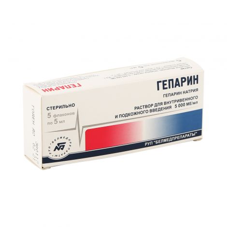 Гепарин раствор д/ин . 5000 МЕ/мл по 5 мл №5 во флак . Belmedpreparaty . от 491 .97 грн . найдено в 16 аптеках . Цены в аптеках . Гепарин раствор д/ин . 5000 ЕД/мл по 5 мл №5 во флак . Pharma Life . от 488 .54 грн . найдено в 2 аптеках .
