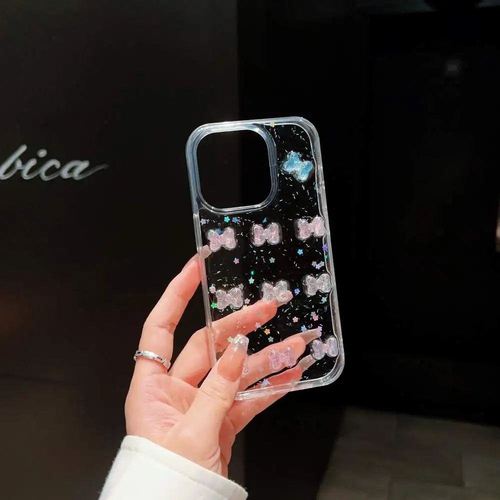 Купить Glitter Clear TPU Bow Colorful Transparent Phone Case Cover For iPhone 11 13 Pro Max 14 Plus 7 8 12 mini XS XR Protective Skin за 200рублей