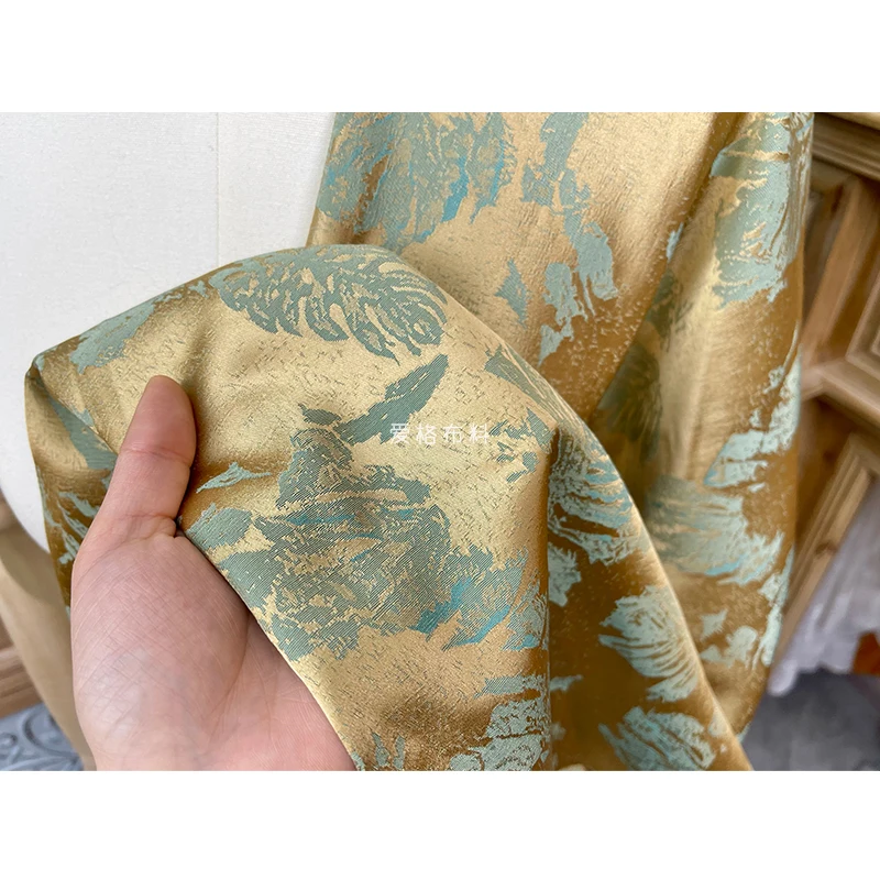 Купить Glossy Pendant Gold Contrast Color with Green and Blue Double-Sided Jacquard Satin Fashion Fabric Spring and Autumn Cheongsam за 1750рублей