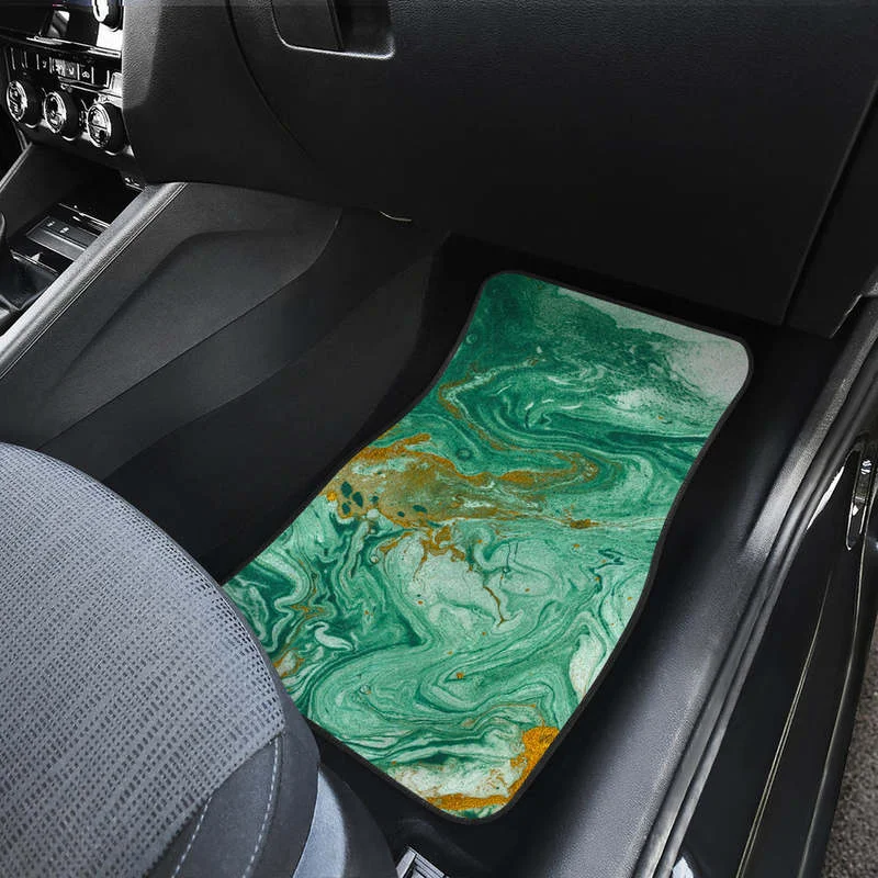 Купить Green Gold Liquid Marble Print Front and Back Car Floor Mats Heavy Carpet Front and Rear Full Set 4PCs Pack за 1000рублей