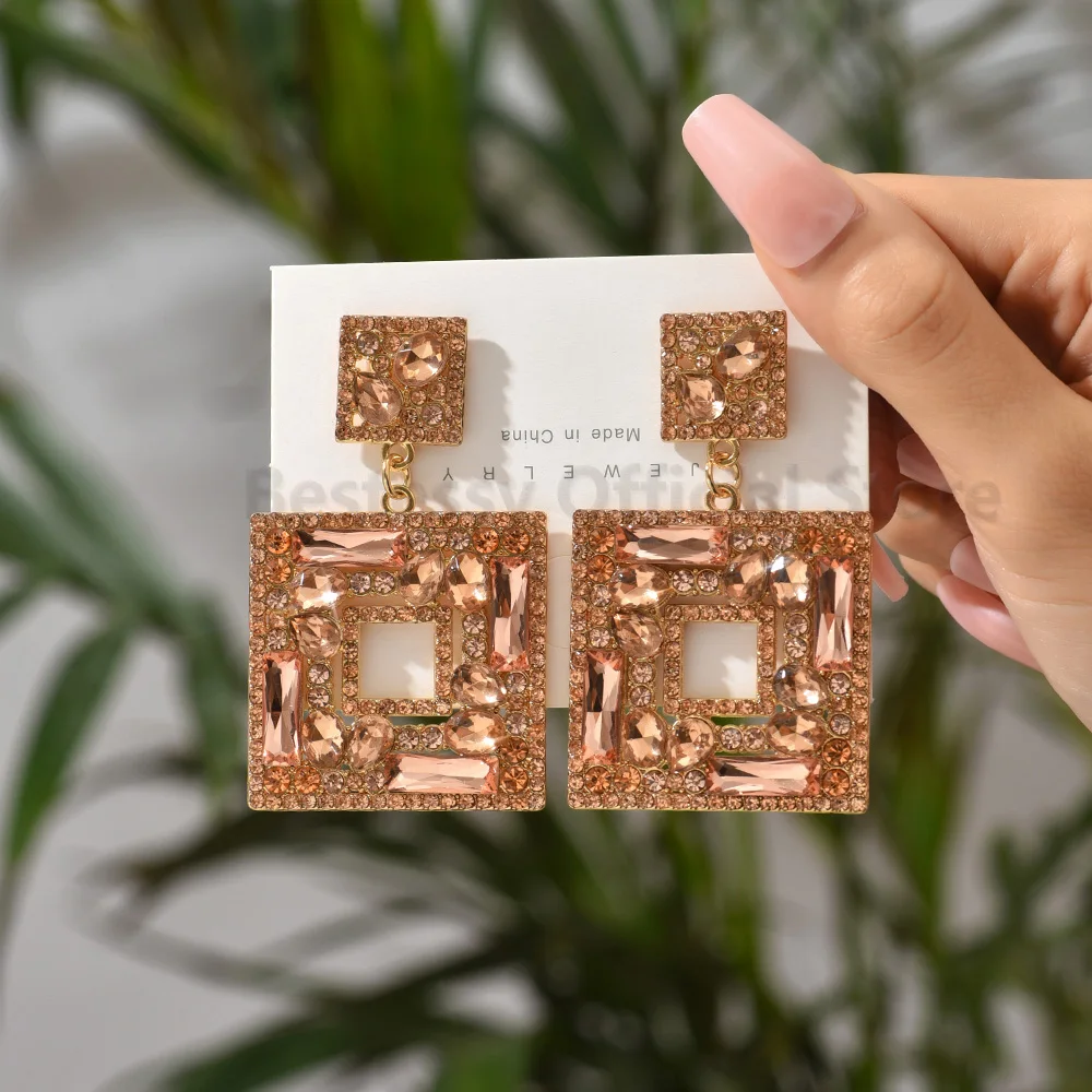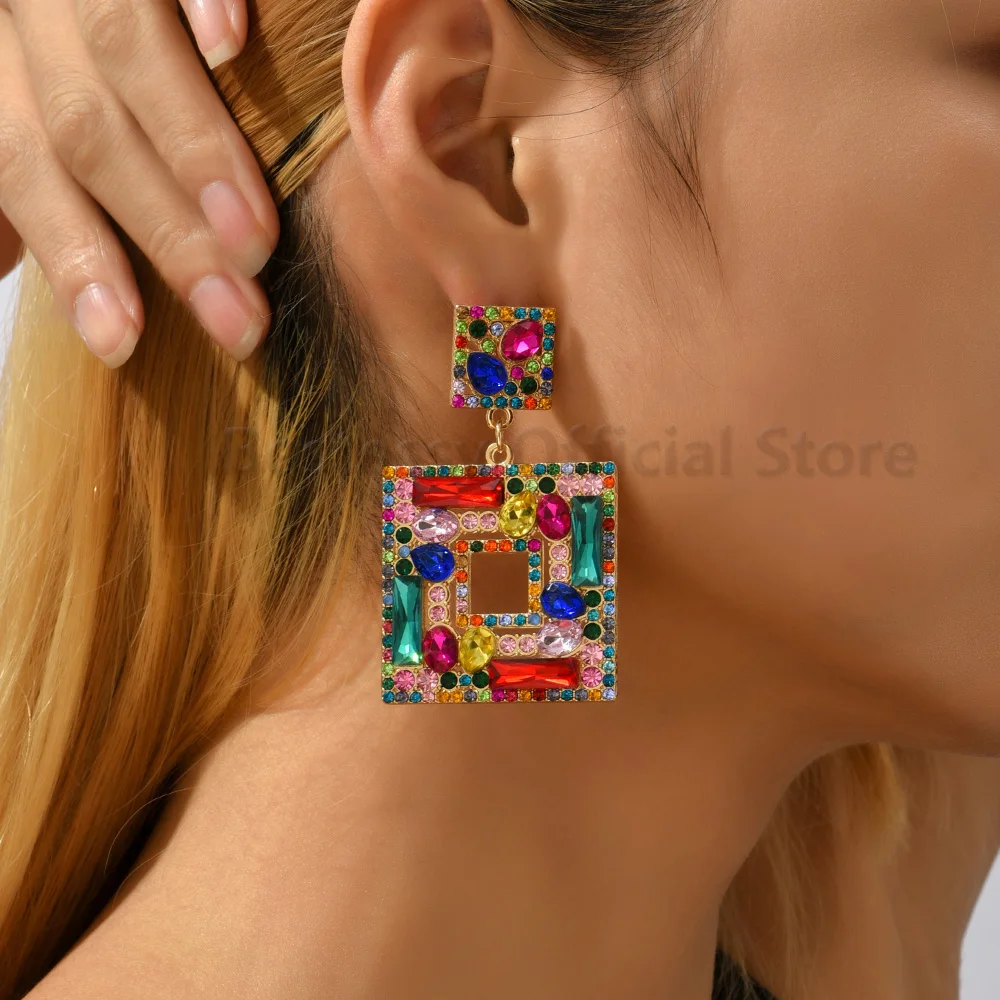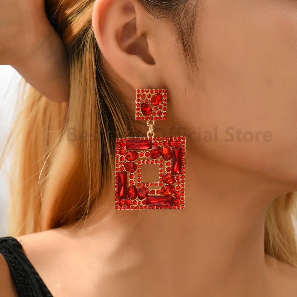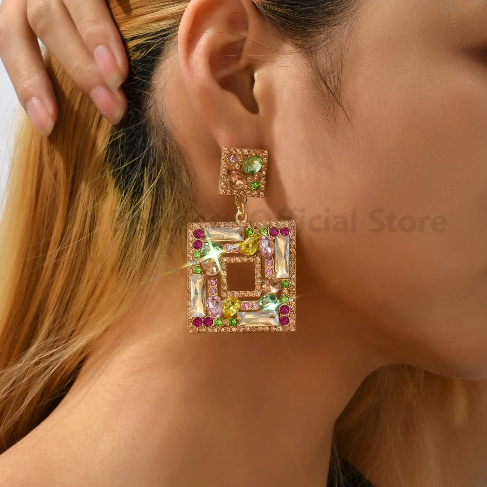 Купить Green Rhinestones Square Dangle Earrings For Women Trend Luxury Design Vintage Jewelry Piercing Ear Accessories Girl Party Gift за 200рублей