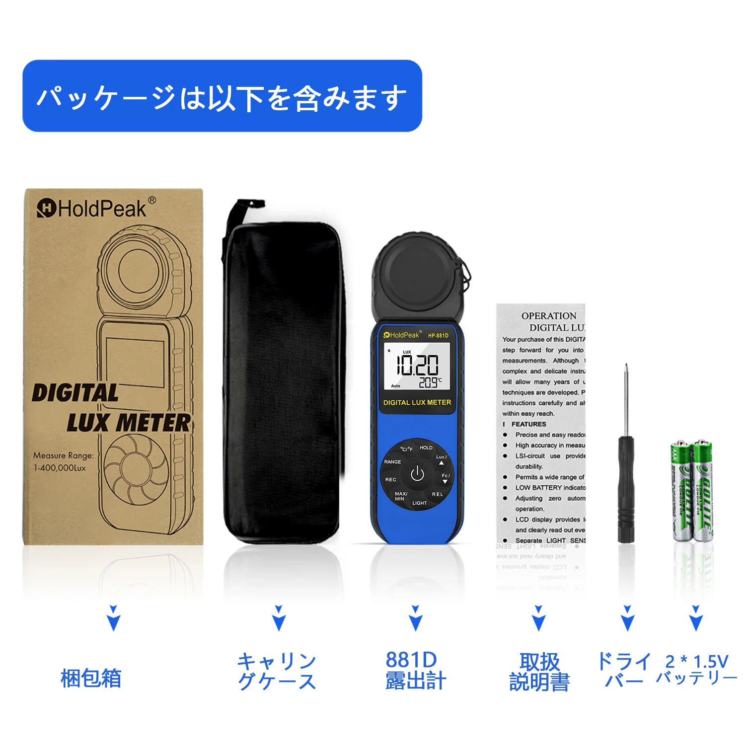 Купить HP-881D Digital Illuminance Light Meter, 0.01~400,000 Lux Foot Candles Luxmeter with 270º Rotated Sensor Light Tester за 1650рублей