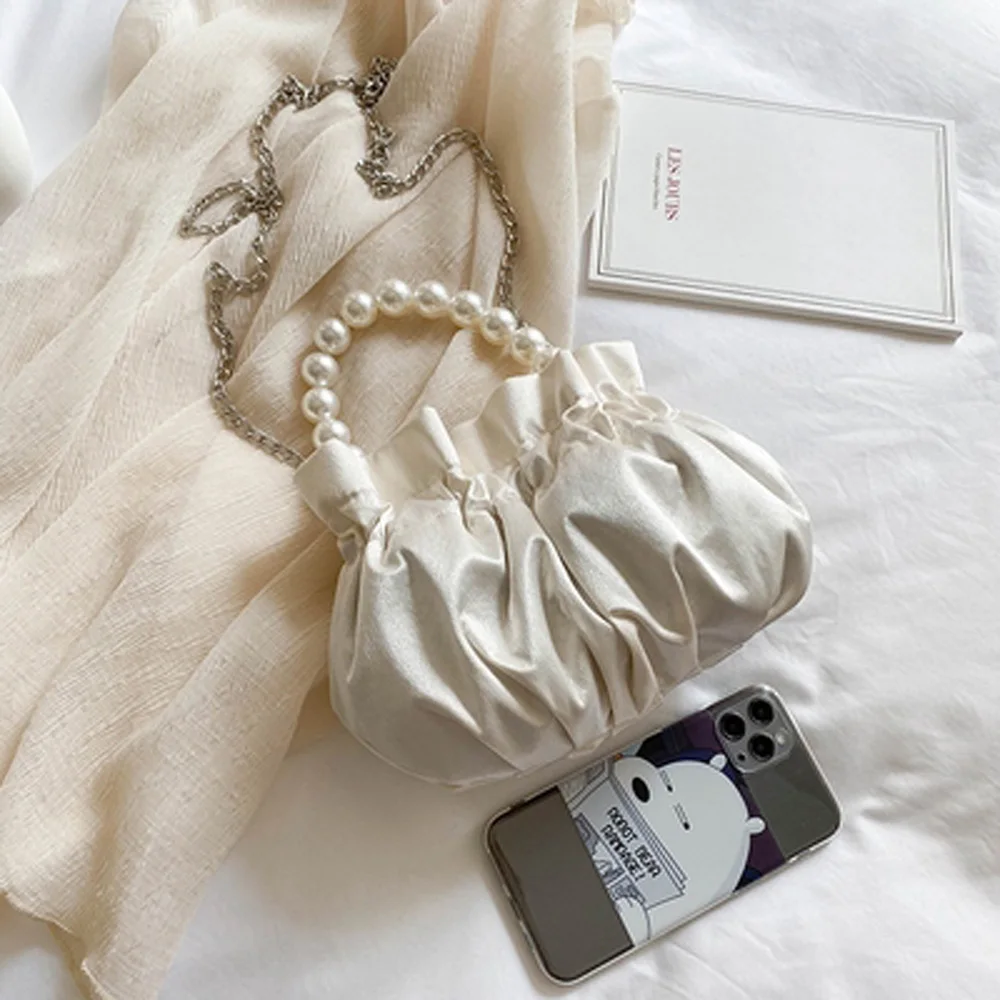 Купить HTB-06 wrinkle cloud shape pearl handbag&messenger bag with chain за 500рублей
