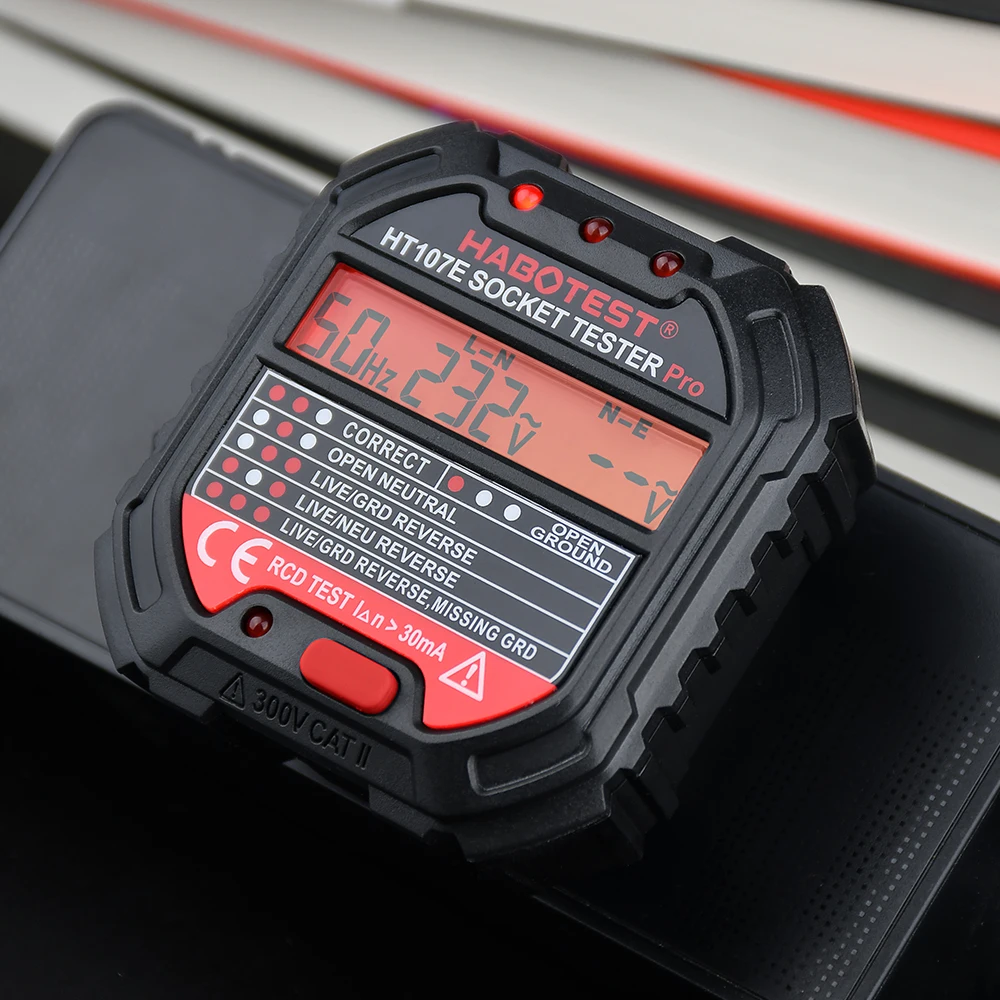 Купить Habotest HT107 Socket Tester Pro Voltage Test RCD 30mA Socket Detector UK EU Plug Ground Zero Line Plug Polarity Phase Check за 550рублей
