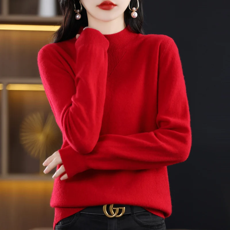 Купить Half Turtleneck Sweater Woman Slim Body Build Pullover Sweater Autumn Winter 2022 New Long Sleeve Sweater Temperament Base Shirt за 800рублей