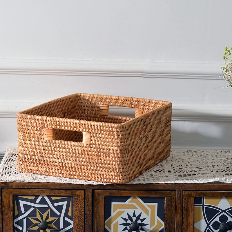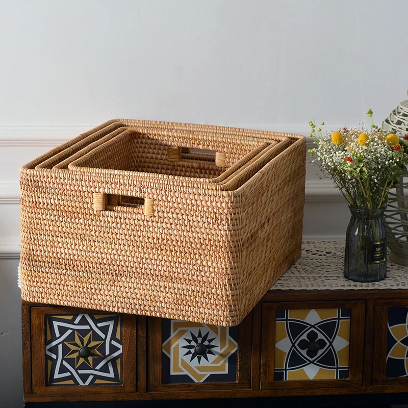 Купить Hand-woven Rattan Storage Basket with Handle Big Toys Storage Box for Kids Rectangular Household Rack Wardrobe Storage Box за 2850рублей