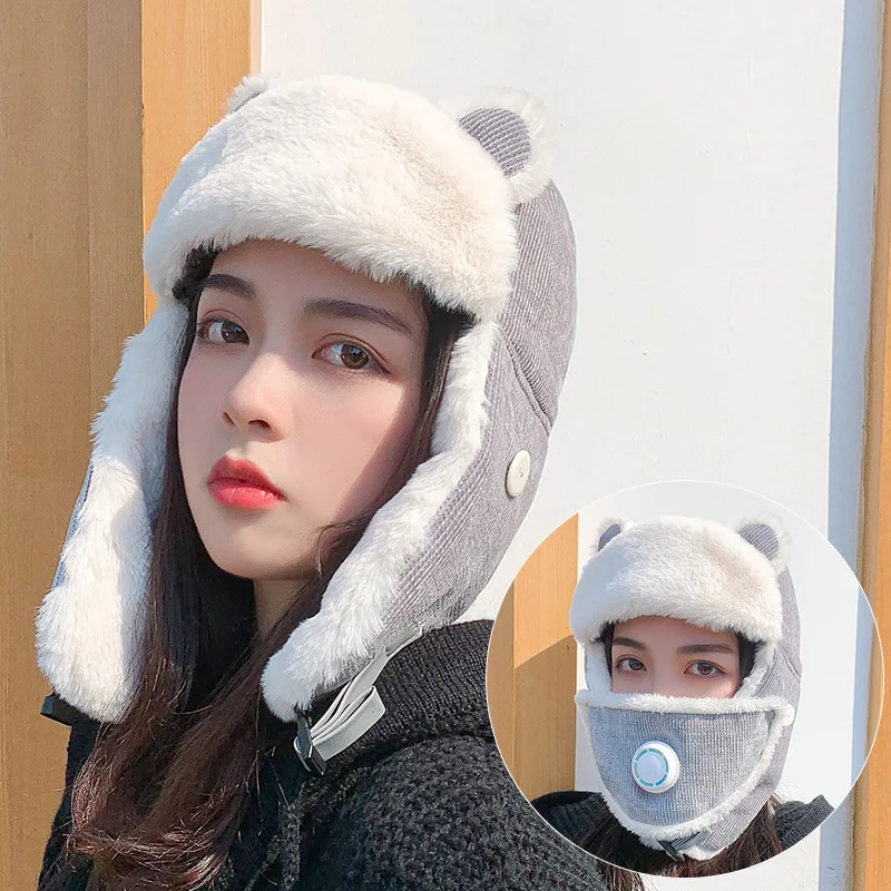 Купить Hat Winter Ear Protection Cartoon Lei Feng Hat Female Mask Breathable Cute Plush Warm Hat Ski Windproof Hat Bonnets for Women за 700рублей
