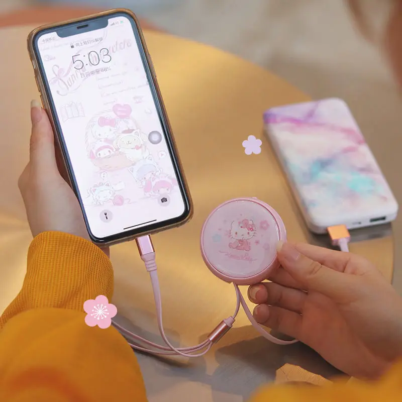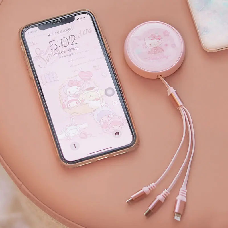 Купить Hello Kitty Telescopic Data Cable One Drag Three Cartoon Cute Pink Android Type-c Three-in-one Portable Fast Charging Cable за 550рублей