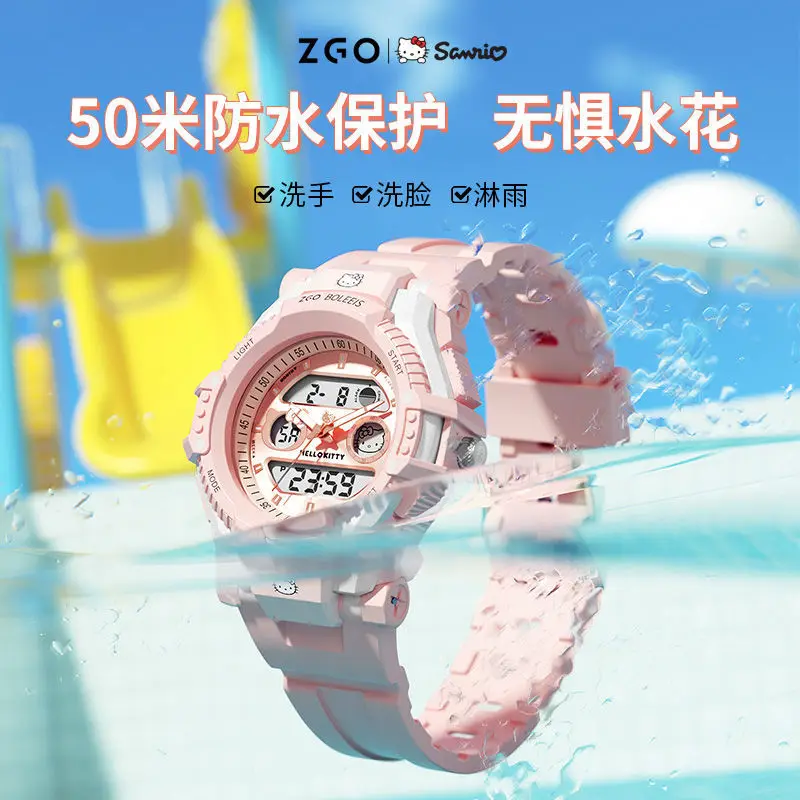 Купить Hello Kitty children's watch student simple sports waterproof luminous pointer led digital double dial rubber electronic watch за 1700рублей