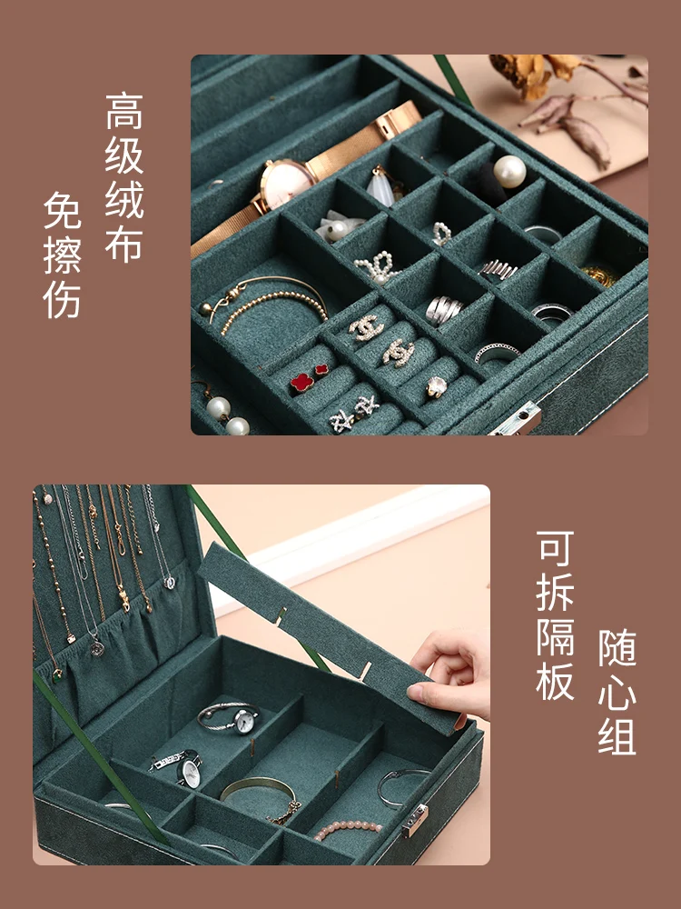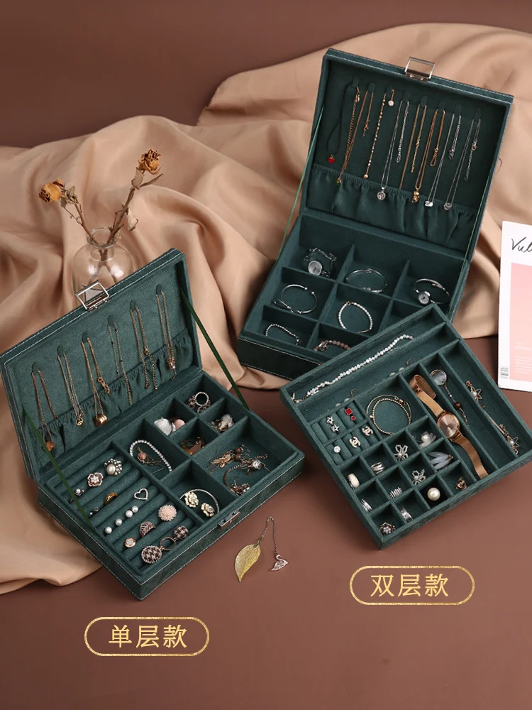 Купить High-End Jewelry Box Earrings Necklace Storage Box with Lock Light Luxury Large Capacity Earrings Ring Hand Jewelry Flannel Box за 2950рублей