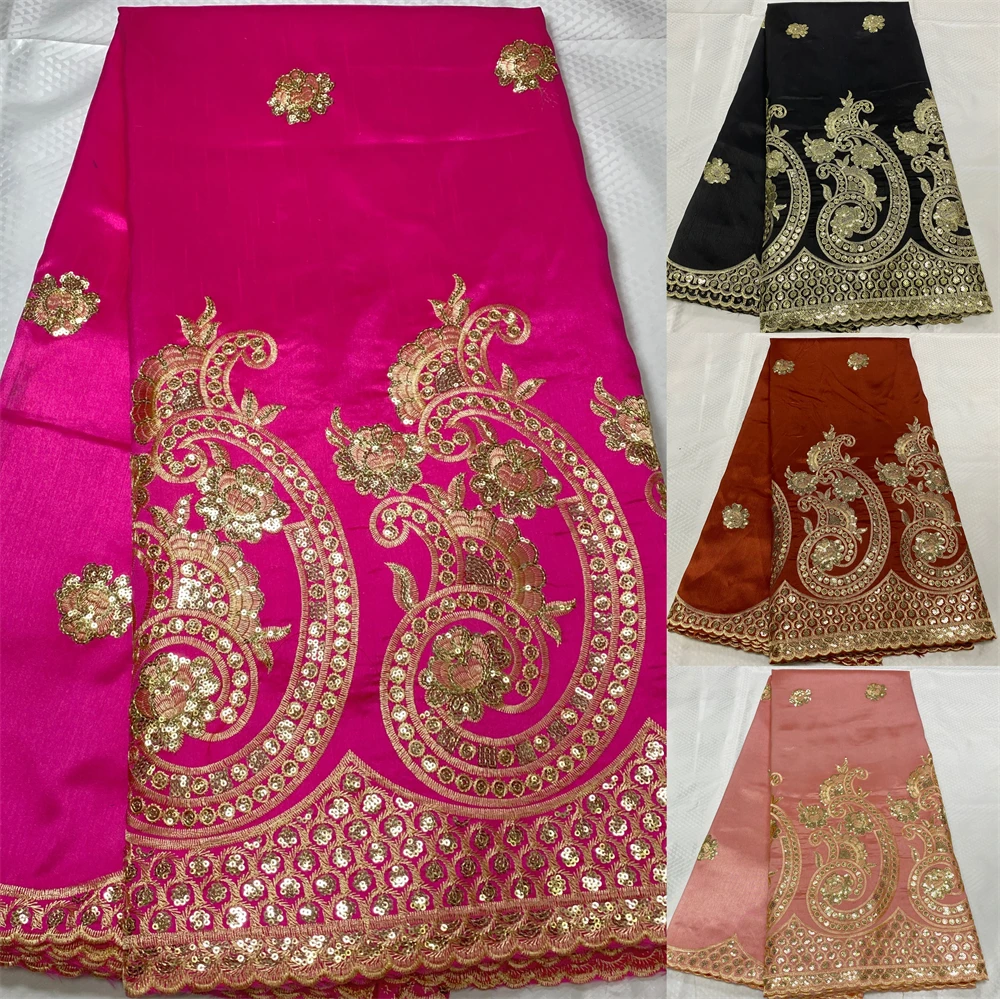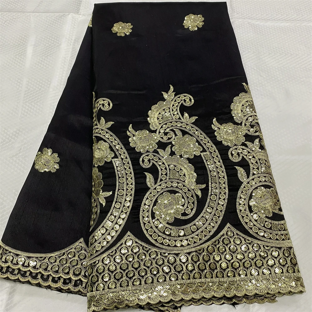 Купить High Quality 5 Yards Black African George Lace Fabric With Net Gold Sequins Embroidered George Lace Fabric For Evening Dress Sew за 2050рублей