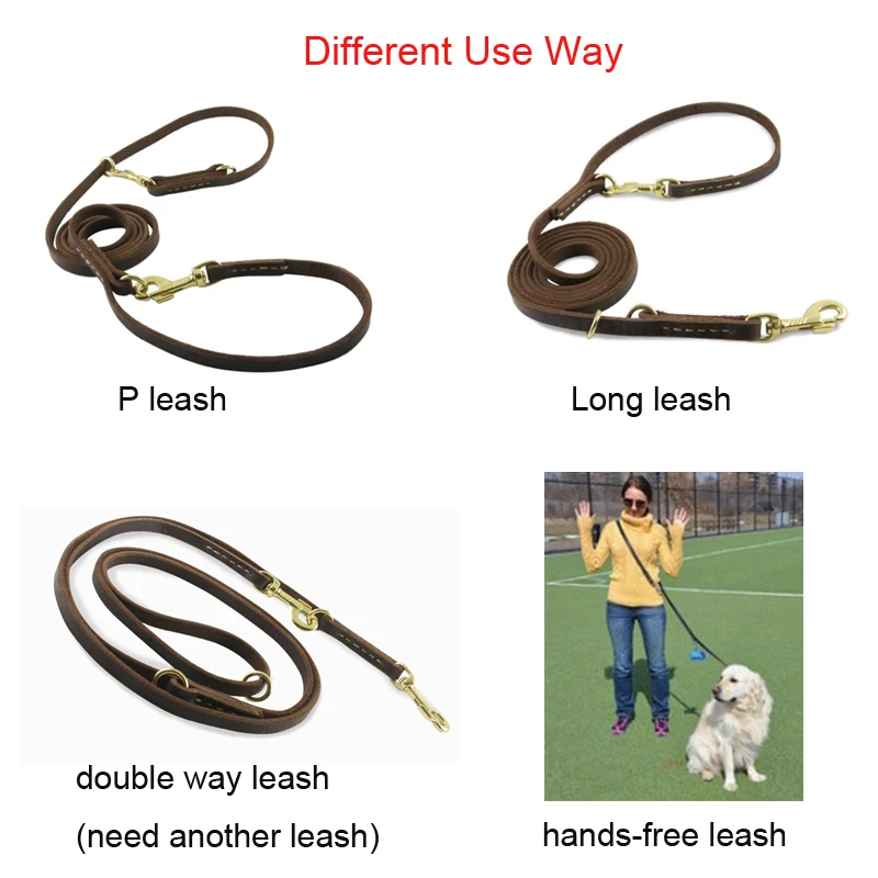 Купить High Quality Dog Training Leash Long Pulling Rope Handmade Real Leather Pet P Leashes for Medium Big Dogs Pet Walking Leads за 1250рублей