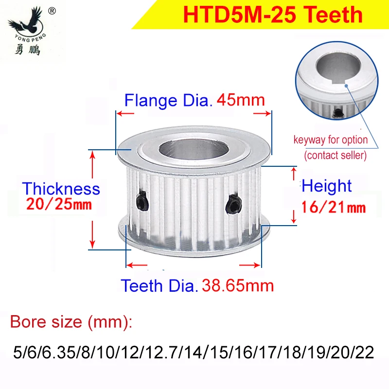 Купить High Quality HTD5M 25 Teeth Timing Pulley 25T ARC Tooth Fit for Belt Width 15mm 20mm of HTD 5M S5M Timing Belt CNC Machine за 400рублей