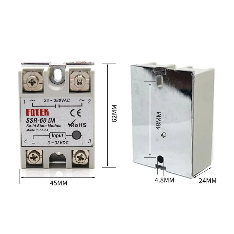 Купить High Quality Single Phase Solid State Relay SSR 60-100DA DC Control AC 3-32V Input 24-380V 60-100AA Output AC To AC Relay Base за 250рублей