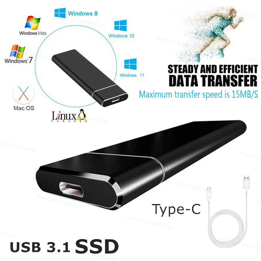 Купить High-Speed 1TB 2TB 4TB 8TB 16TB SSD Portable External Solid State Hard Drive USB3.1 Interface Mobile Hard Drive for Laptop Mac за 600рублей