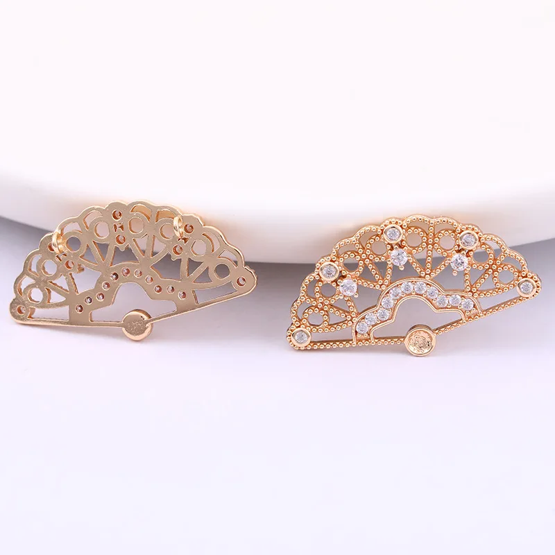 Купить Hollowed out fan chain earrings of the Republic of China pure copper fan zircon accessories DIY Earrings за 200рублей