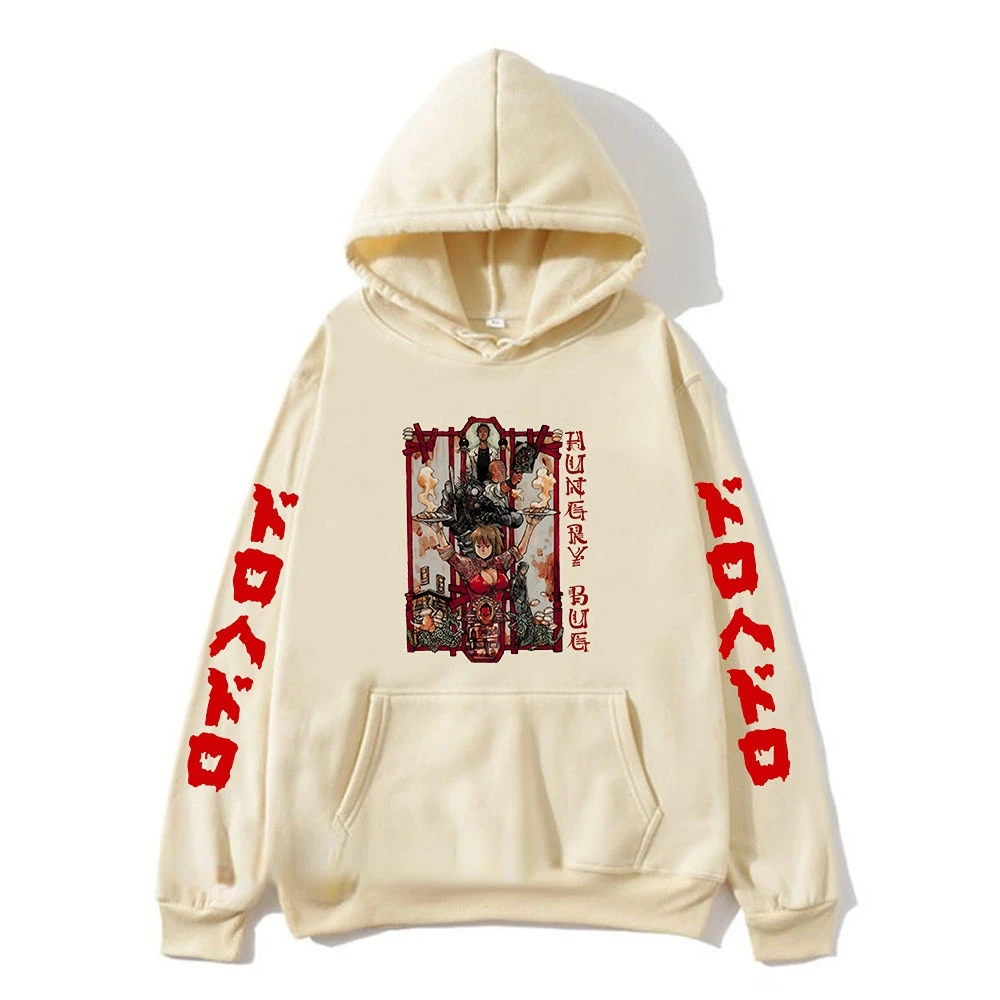 Купить Hungry Anime Print Hoodies Kaiman Vintage Hip Hop Casual Sweatshirt Streetwear Fashion Pullover Hoodie за 450рублей