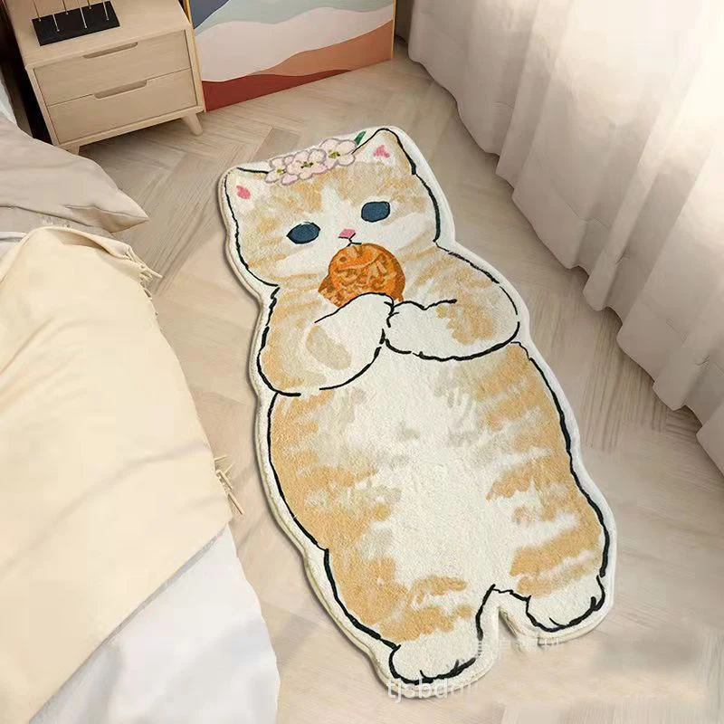 Купить INS Cute Cat Rug, Girl Rug Living Room Bedroom Bedside Blanket Children's Room Cartoon Rug, Furry Mat Rectangular Thickened Rug за 800рублей