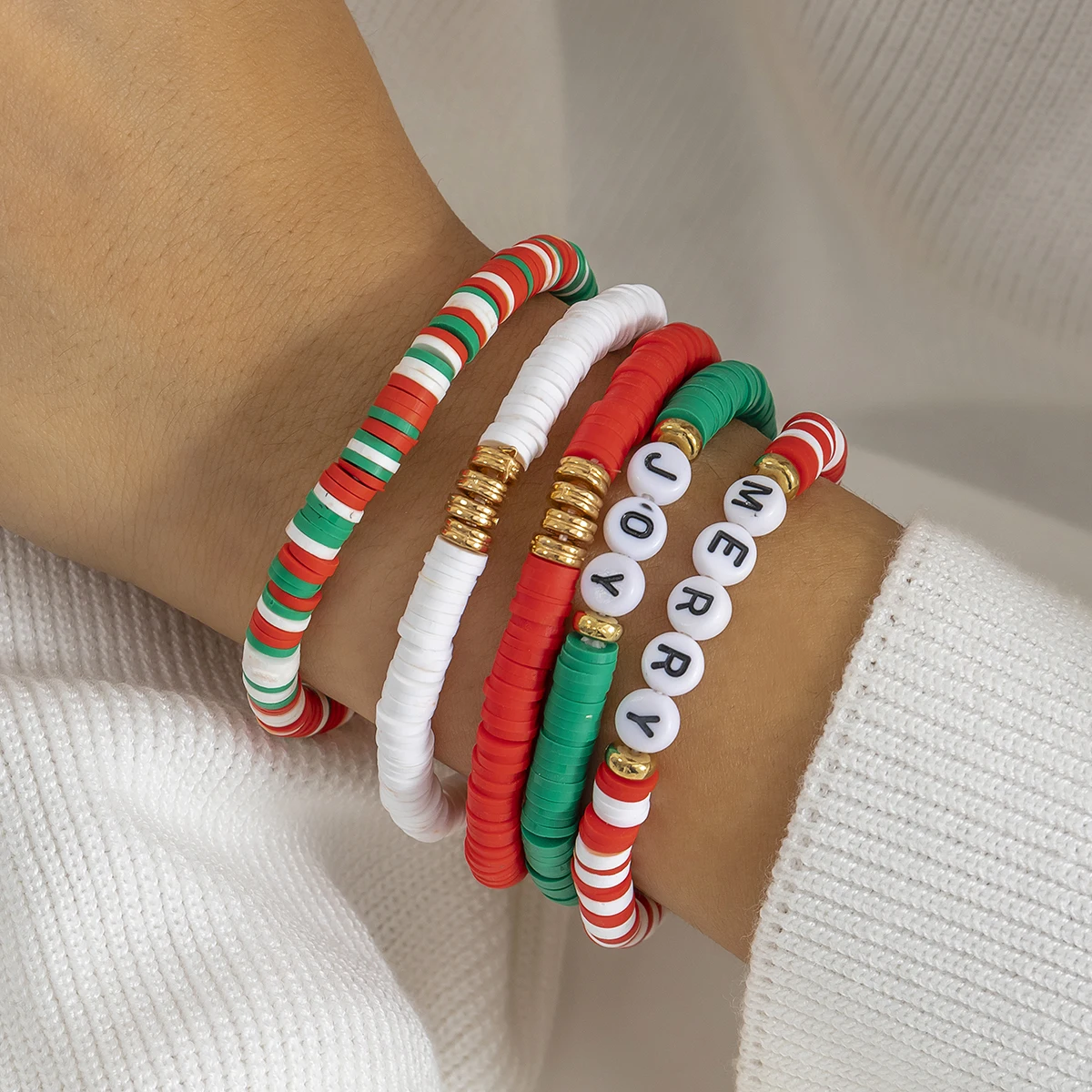 Купить Ingemark 5Pcs Multicolor Polymer Clay Bracelets Set for Women Boho Elastic Chain Bangles Letter Y2K Hand Jewelry Christmas Gift за 200рублей