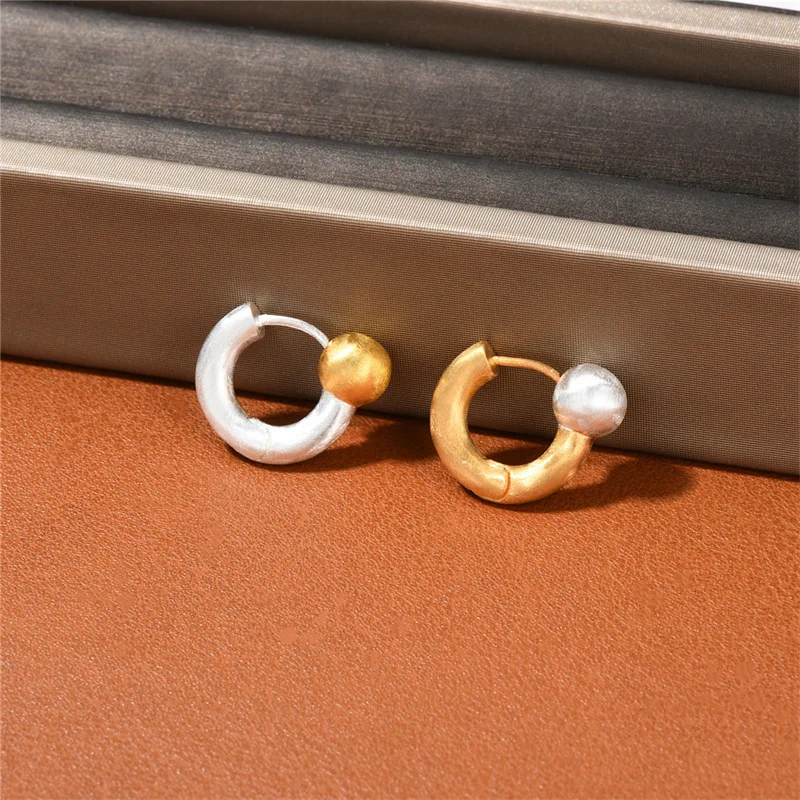Купить Ins Niche Design Gold/Silver Circle Color Matching Earrings Frosting Simple Temperament OL Fashion Street Jewelry Accessories за 850рублей