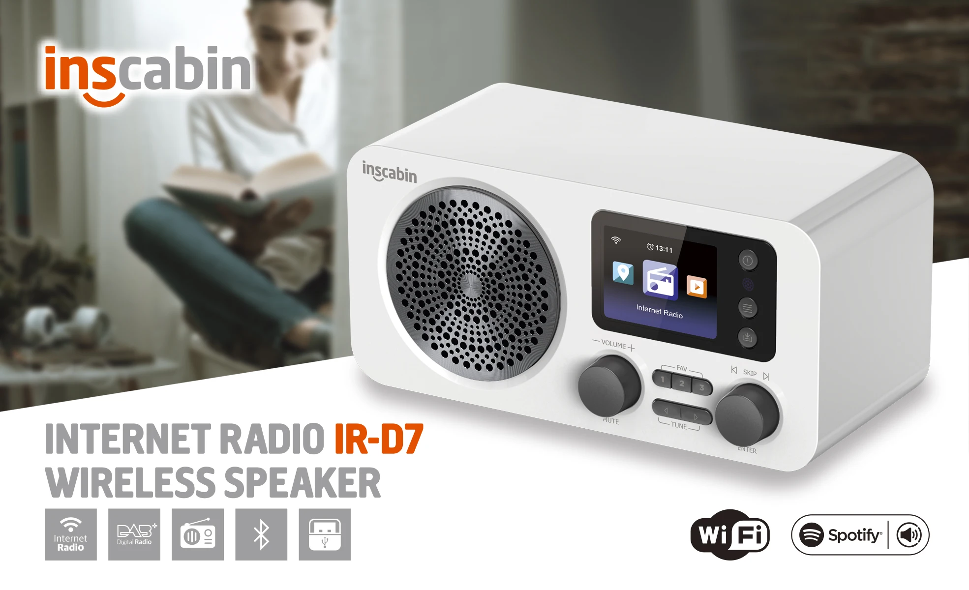 Купить Inscabin D7 Internet DAB/DAB+ Digital Radio, Internet Radio/Digital Radio with Spotify Connect and Bluetooth/FM/Colour Screen за 5500рублей