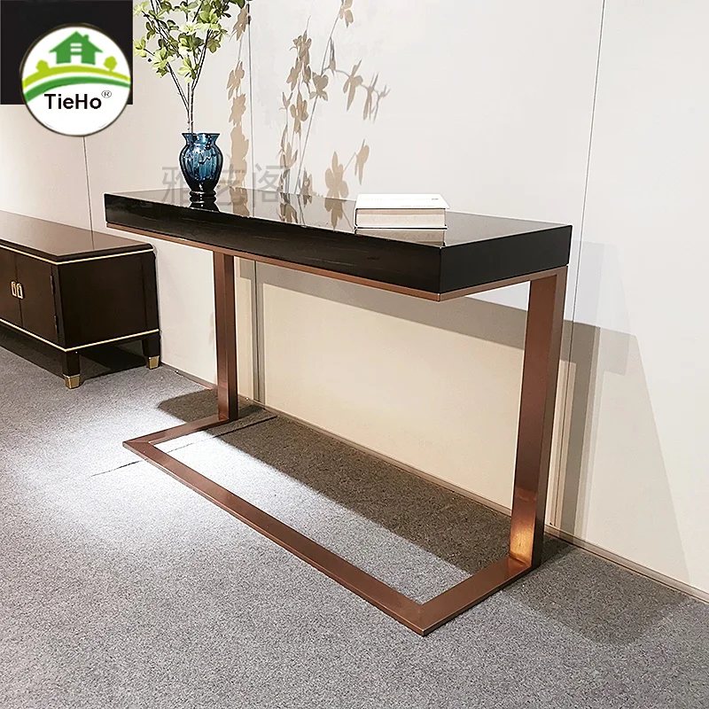 Купить Italian Luxury Stainless Steel Console Table With Ebony Wood Tabletop Free Installation Long Console Table For Hallway Furniture за 40100рублей