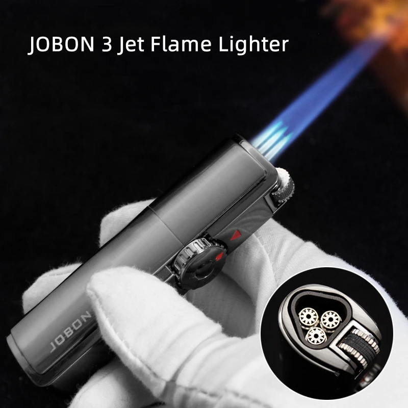 Купить JOBON Inflatable 4 Torch Jet Cigar Lighter Windproof Metal Grinding Wheel Flint Lighter Gas Butane Inflated Cigar Punch Gadgets за 450рублей