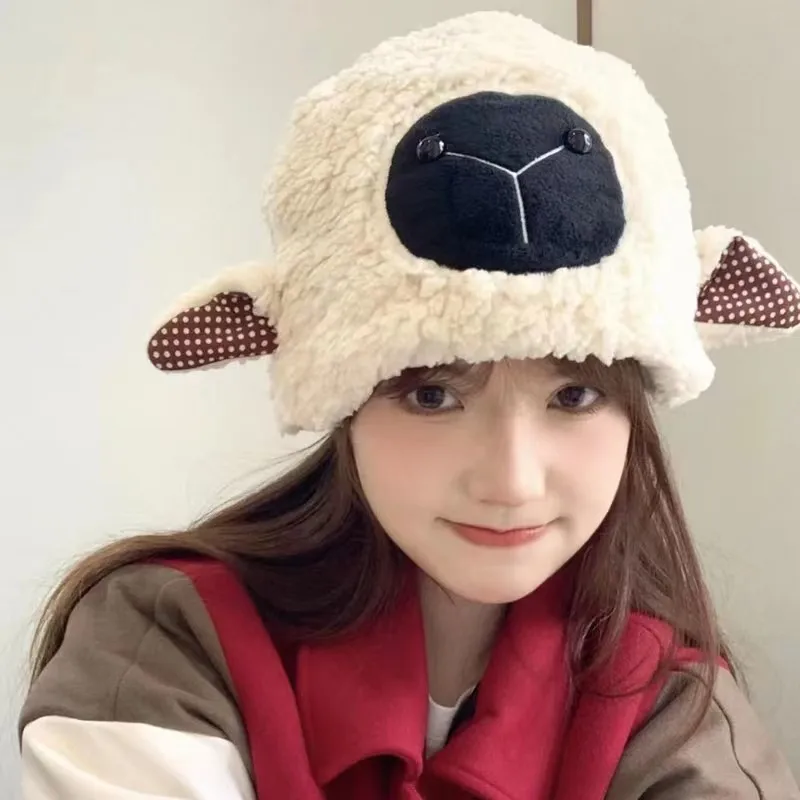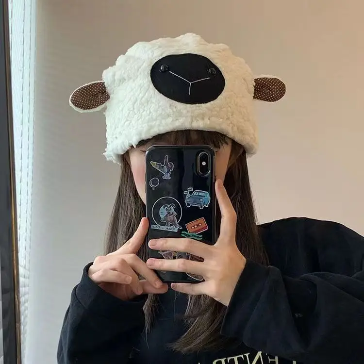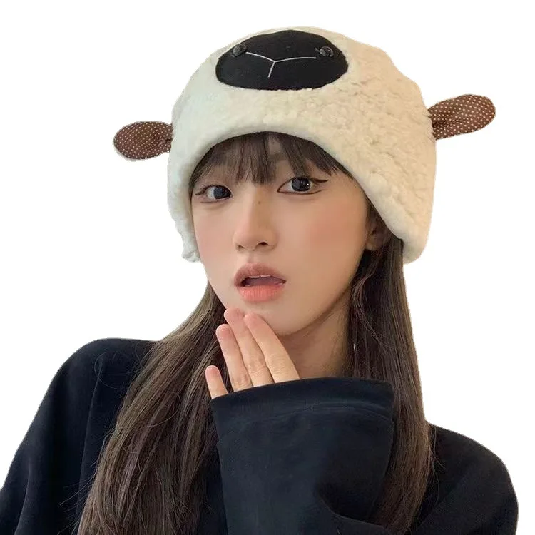 Купить Japanese Sweet Lamb Hat Female Autumn and Winter Warm Ear Protection Lamb Wool Toque Lamb Wool Sleeve Cap Tide за 250рублей