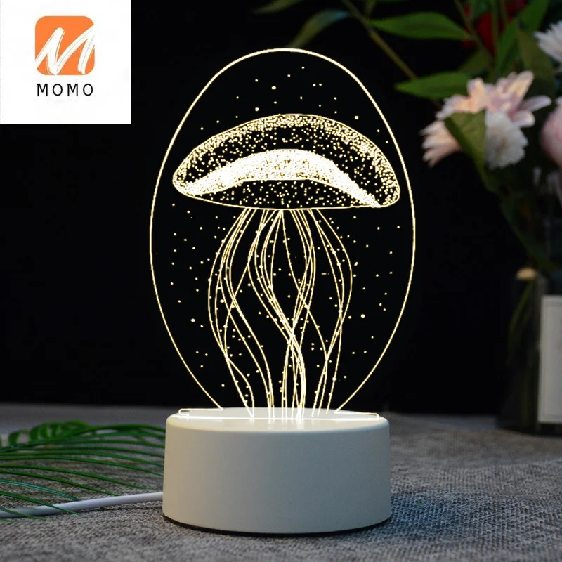 Купить Jellyfish Lamp Exotic Acrylic Customized Products 3D Small Night Lamp Creative Gift Touch Colorful Bedroom Bedside Led Lamp за 950рублей