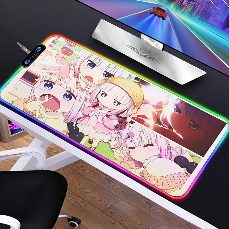 Купить Kawaii Anime Girl Kanna Large RGB Mouse Pad Multi-interface Four USB Docking Dock LED Pink MousePads Typec Interface Desk Mat за 800рублей