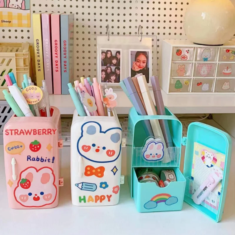 Купить Kawaii Pen Holder Case Creative Refrigerator Shaped Pen Container Cute Multifun Stationery Drawer Storage Box Desk Organizer за 600рублей
